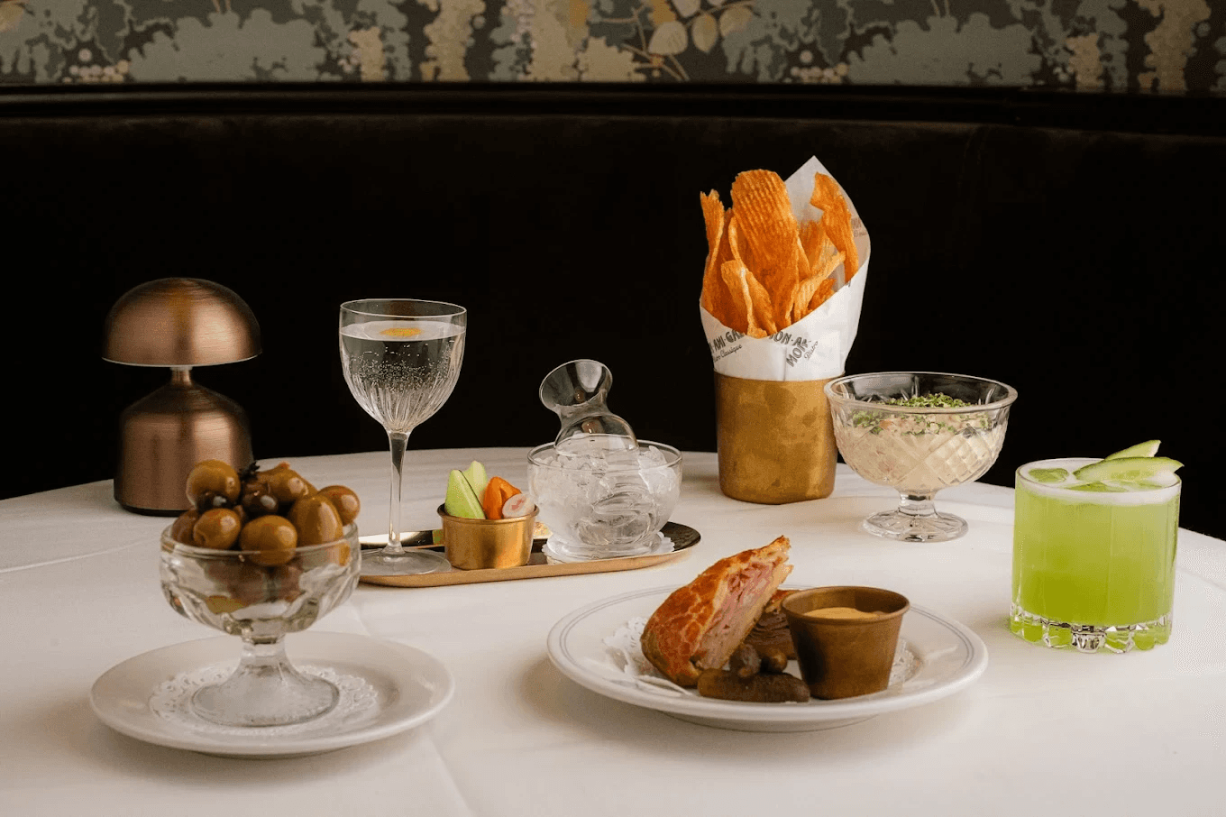 The menu features traditional French bistro favorites with subtle modern touches, including Steak Frites, Roast Chicken à la Grand-Mère, escargots, onion soup au gratin, mussels marinière, and fresh seafood selections. Vegetarian and gluten-friendly options are also available, making the menu accessible to a wide range of diners. The food is designed to feel comforting, familiar, and consistently satisfying.