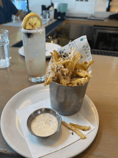 Bright and airy, the dining room reflects a modern beach-house aesthetic with an intentionally casual feel. The space is especially lively during brunch and dinner hours, making it popular for group gatherings and celebrations. Service is generally friendly and attentive, with staff offering helpful menu recommendations and maintaining an energetic yet welcoming environment.