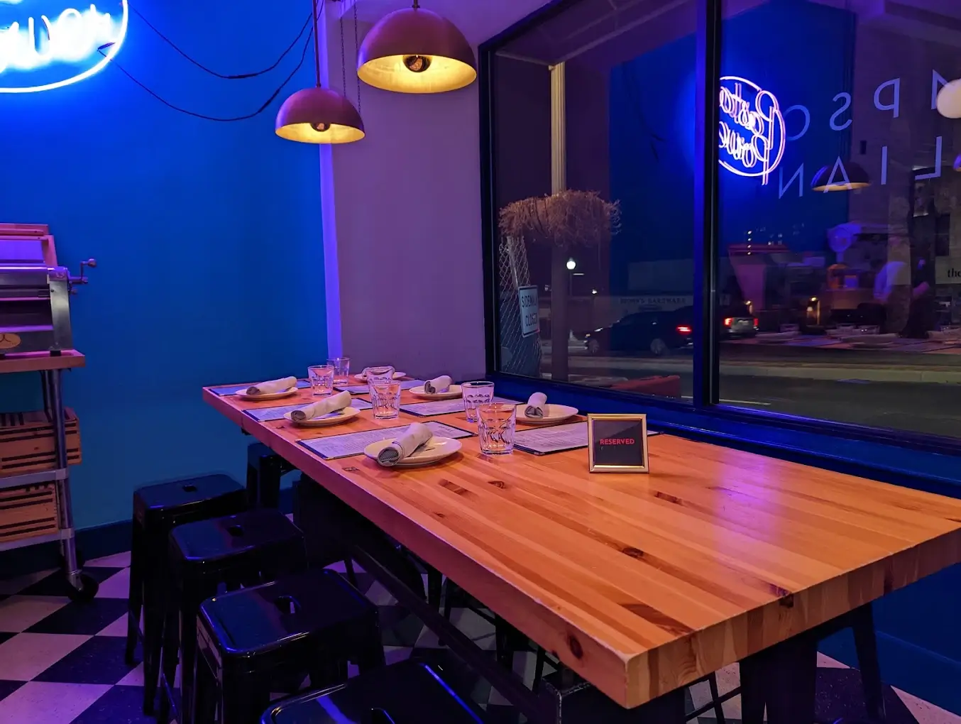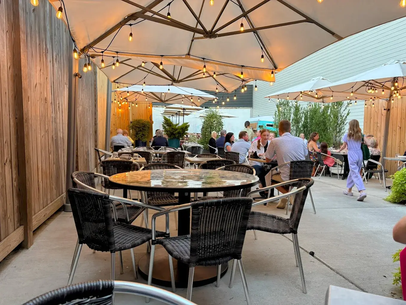 The dining room blends rustic and modern elements, with warm lighting and an open kitchen that adds energy to the space. Service is professional and polished while maintaining a neighborhood-friendly tone. Weekend evenings and brunch can be lively and energetic, while weekday dinners tend to offer a more relaxed pace. The setting works well for date nights, small group gatherings, and celebratory dinners.